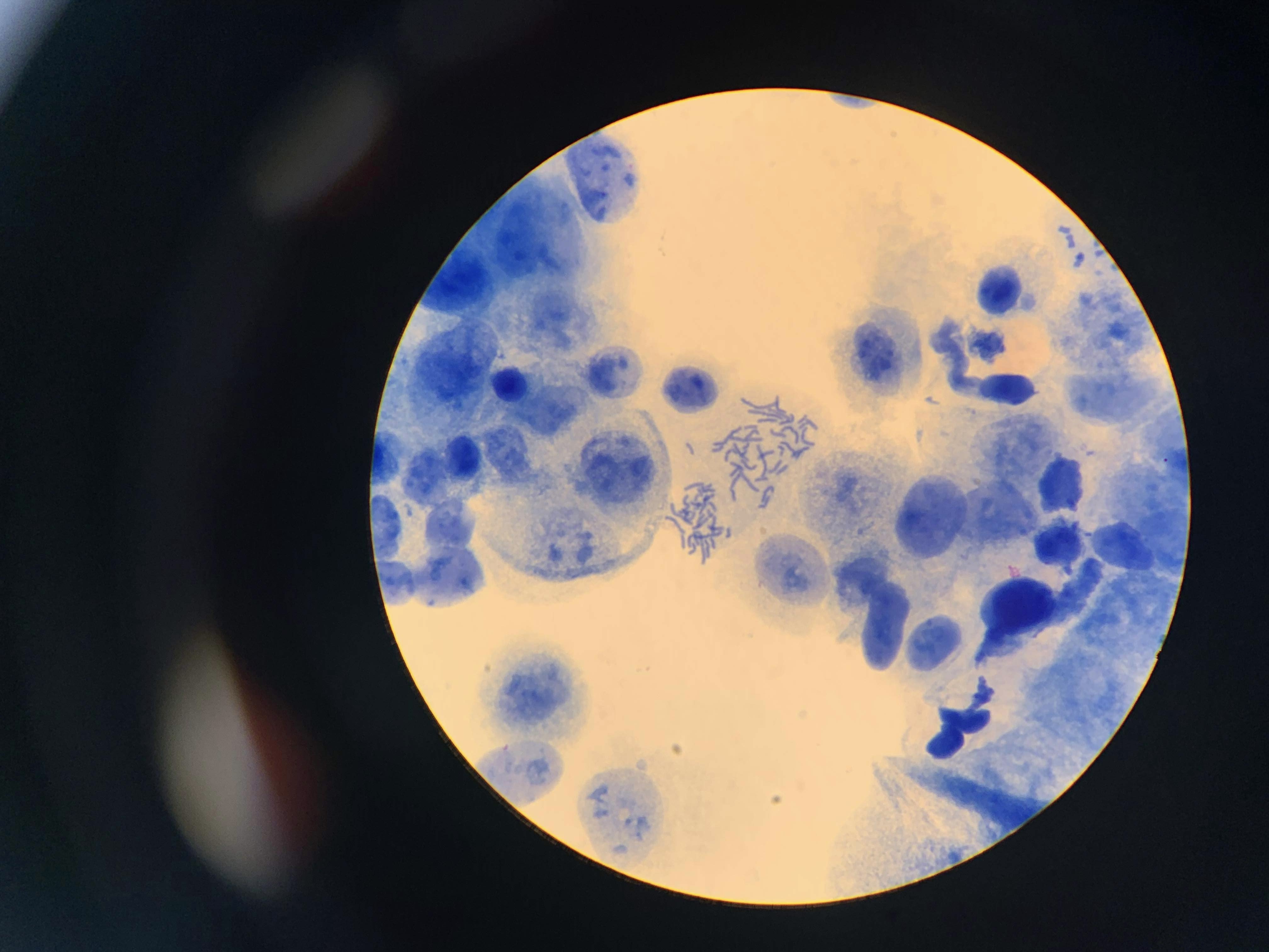Lysing and staining of epithelial cells to determine chromosomal abnormalities.